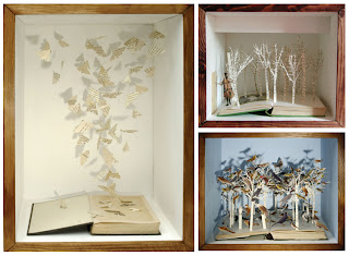 I love these shadow box art peices. They are so beautifully and simply done. I'm working on incorporating 3-D objects into some of my artwork for upcoming shows and I'm inspired by what these artists have done. I have had these pics on file for inspiration for some time so I unfortunately don't have the names artists or their links currently. I will do some research however and post links when I have them.