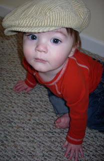 Atticus finally fits his adorable newsie hat that Eric and Julie Elton gave to him! He's so cute in it. Lately he has been crawling around like a mad little animal and climbing up on everything he can. I can't believe tomorrow he'll be 11 months! And then in a month he'll be a year! Where did the time go? If anyone has any cute ideas for his 1 yr old party, I'd love to hear them!